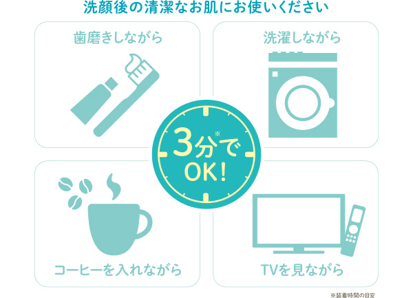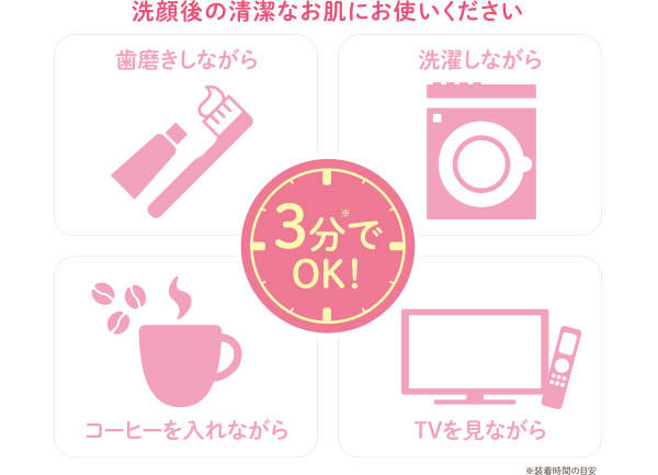 ③ そのまま3~5分(乾燥が気になる方は10分程度)おいてからマスクをはがし、残った美容液をよくなじませてください。