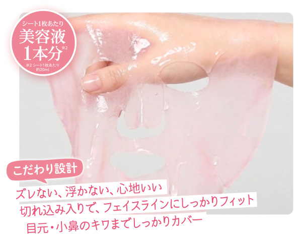 すりつぶした桃花繊維を練り込んだシートがお肌にぴったり密着し、浸透※をサポートします。