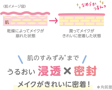 肌のすみずみ*までうるおいを届け、つるんとなめらかでもっちりした肌に整えます。べたつかずに集中保湿し、うるおいが持続します。
